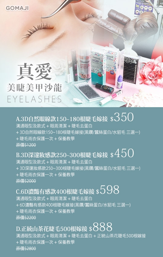 C.6D濃豔有感款400根睫毛嫁接 (黑鑽/蠶絲蛋白/水貂毛 三選一)